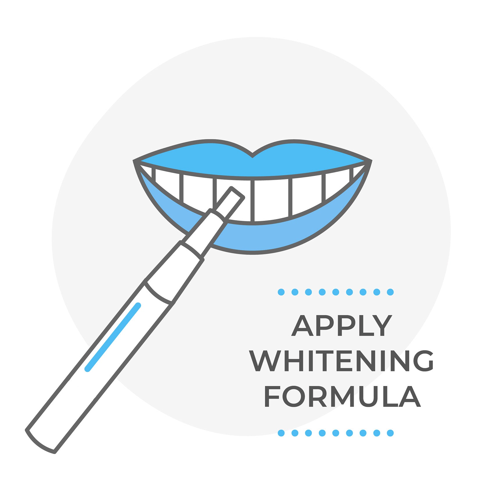 Apply the whitening formula directly to the front surface of your upper and lower teeth. The whitening formula is what gives your teeth that pearly white finish.
